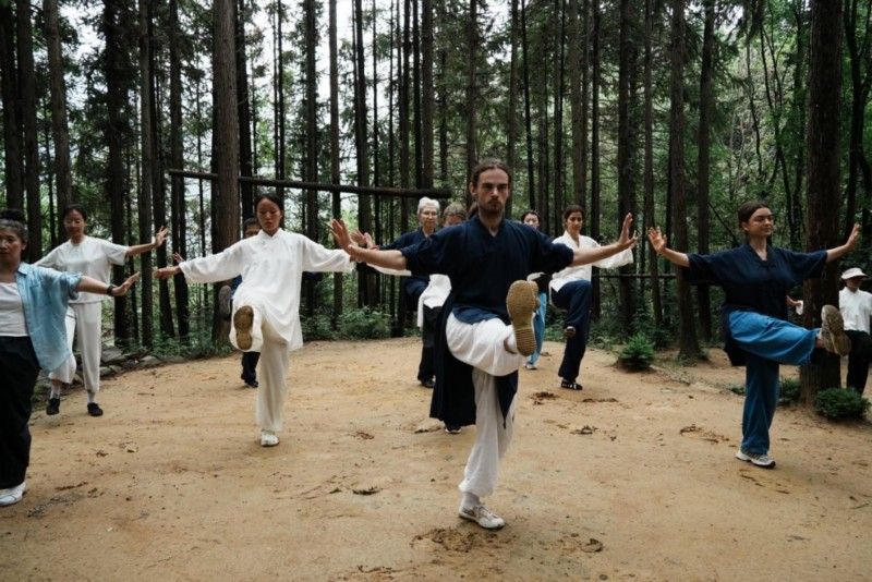 ▲2025年8月15日,荷兰24岁青年托马斯与其他国外学员在武当山学习武当太极拳。(徐刚摄)