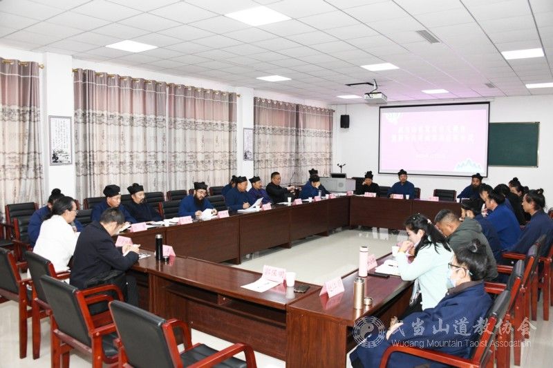 2023年12月3日下午,会长刘文国在武当山道教学院会议室主持召开武当山紫霄宫方丈升座暨癸卯(2023)年全真派道士传戒活动总结会,协会中层以上领导和相关人员参加会议。
